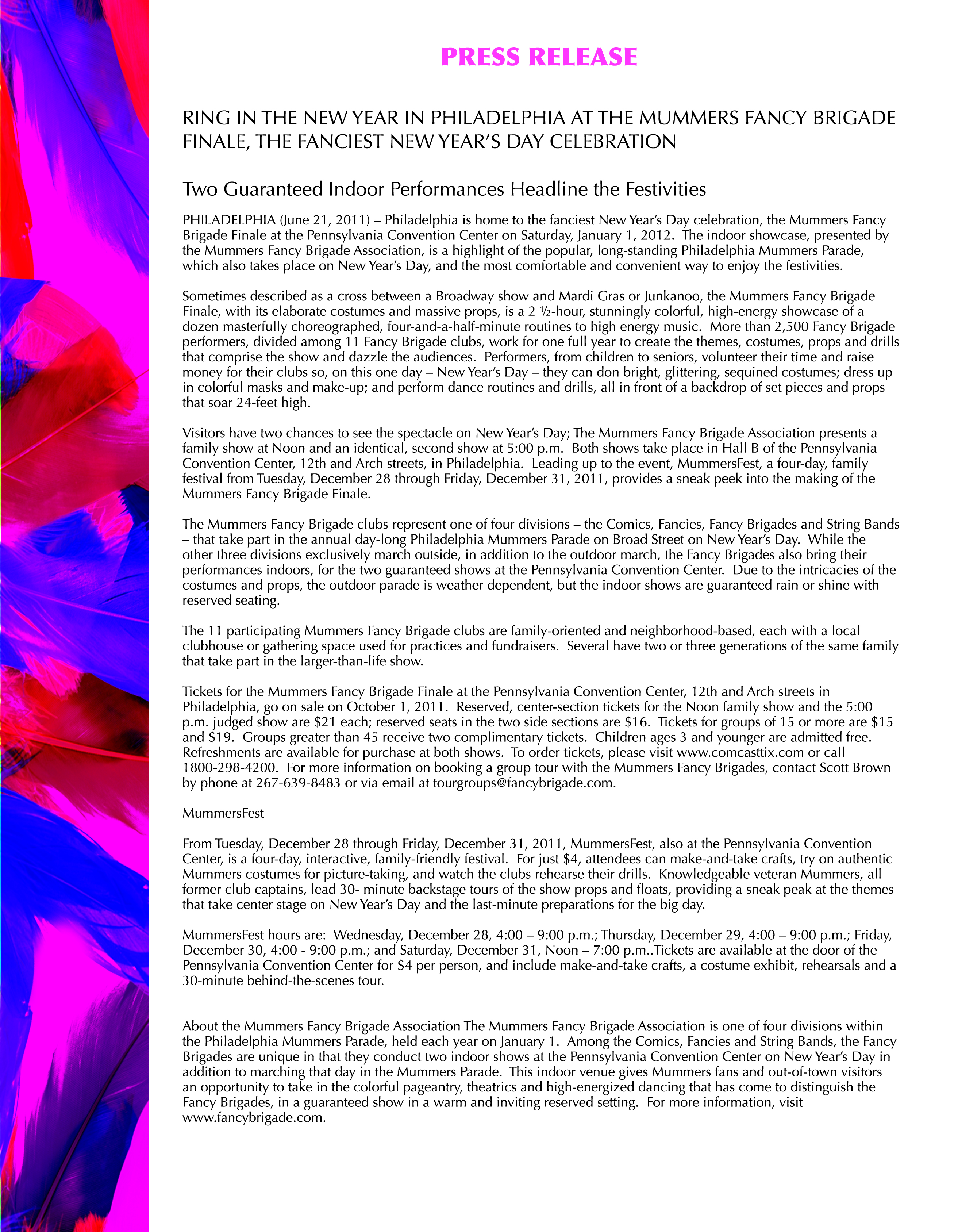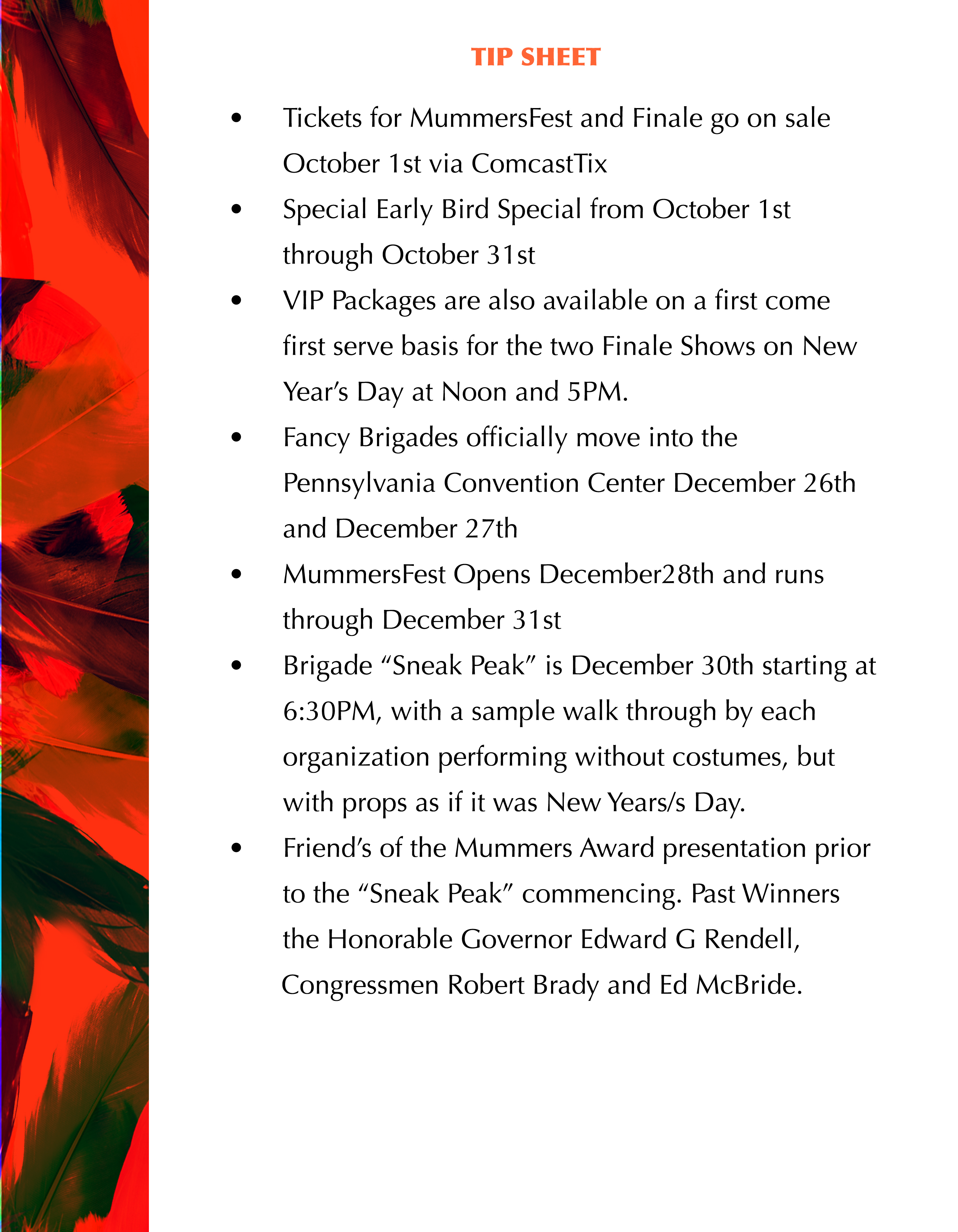 September 2, 2010 Philadelphia Mummers Announce 2010 MummersFest and Finale